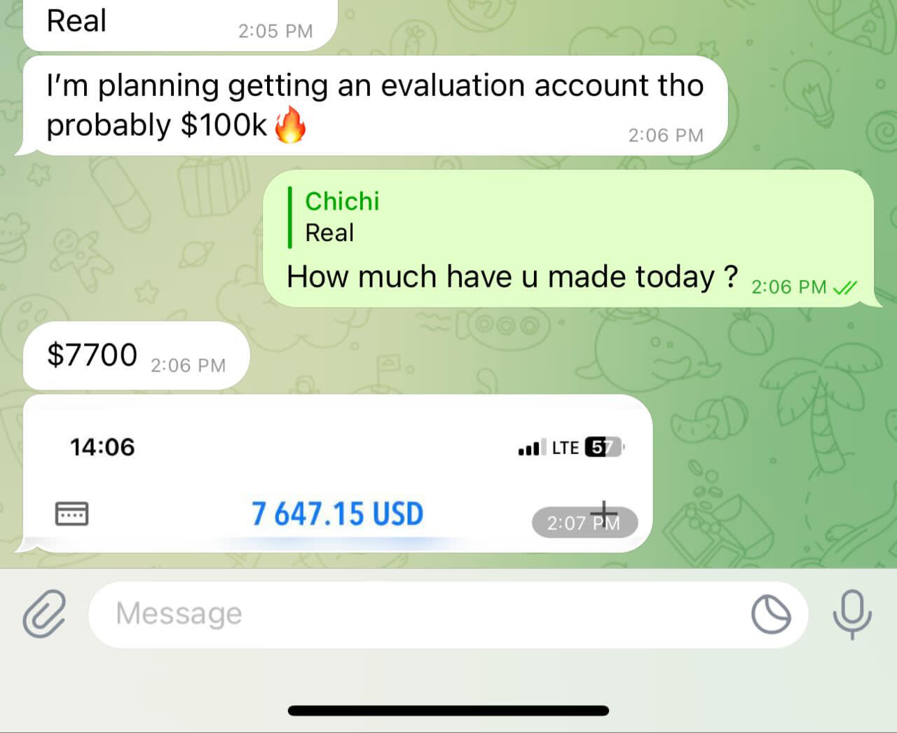 👇This is chichi from Abuja, who made over $7000 with my signals as she is also planing on getting a $100k evaluation account after being wowed by the quality of our premium signals in our ViP elite circle.